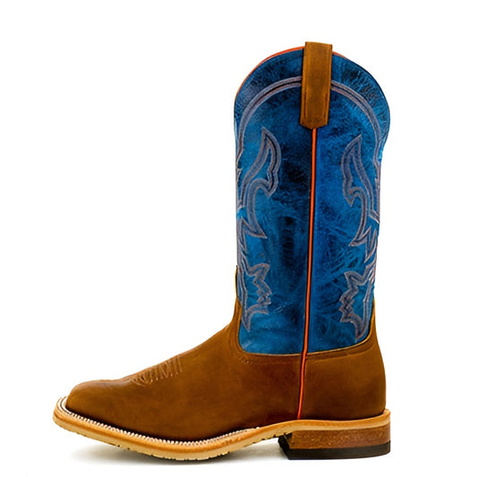 American Darling Women's Carved Bucked Stitch Leather Topper Blue Loafer