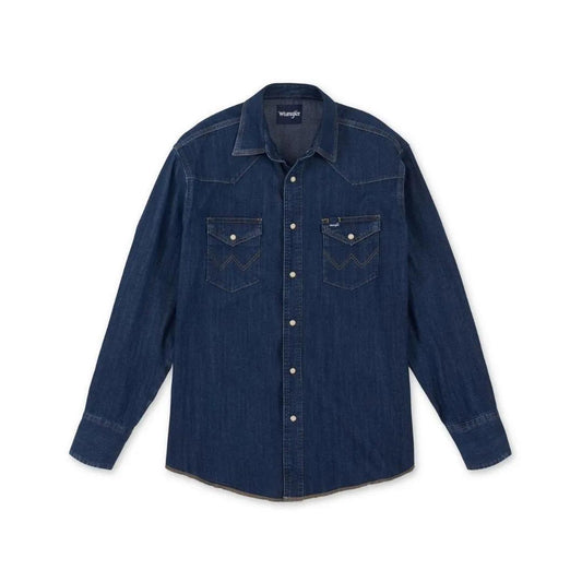 Wrangler Men’s Shirt Long Sleeve Dark Denim with Snaps