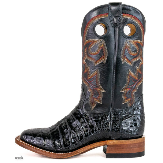 Boulet Men's Cowboy Boots Exotic Caiman One-Piece Roper Heel Wide Square Toe