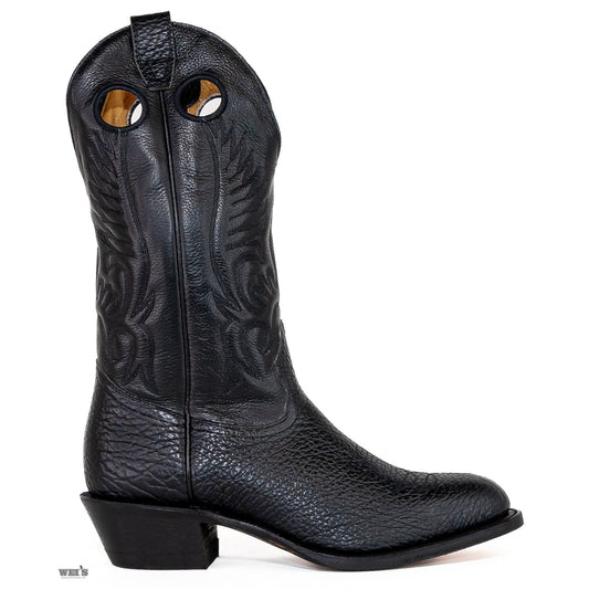 Boulet Men's Cowboy Boots Bullhide with Toe Embroidery Cowboy Heel R Toe in Black