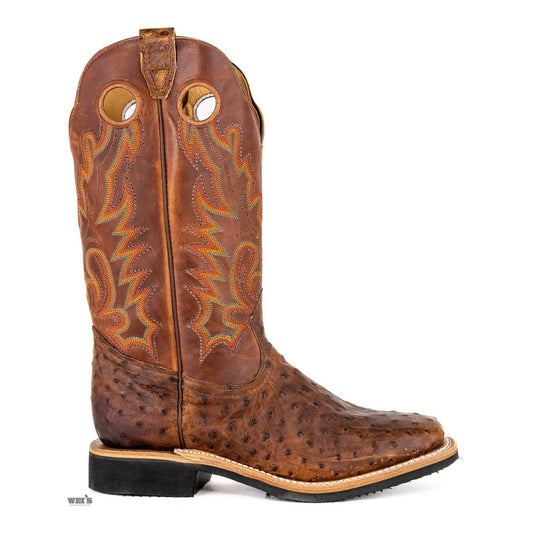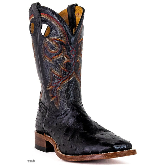 Boulet Men's Cowboy Boots Exotic Ostrich Wide Roper Heel Square Toe