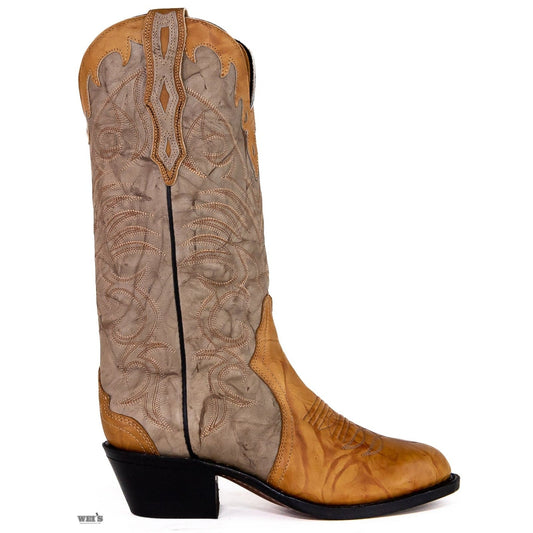 Boulet Men's Cowboy Boots Tri-Colour Cowhide Cowboy Heel U Toe in Butterscotch and Taupe