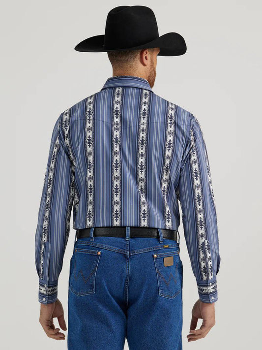 Wrangler Men's George Strait Western Shirt In Blue Print