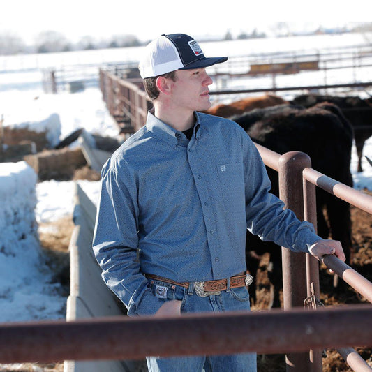 Cinch Men's Dusty Blue Long Sleeve Western Shirt Button Up Match With Son