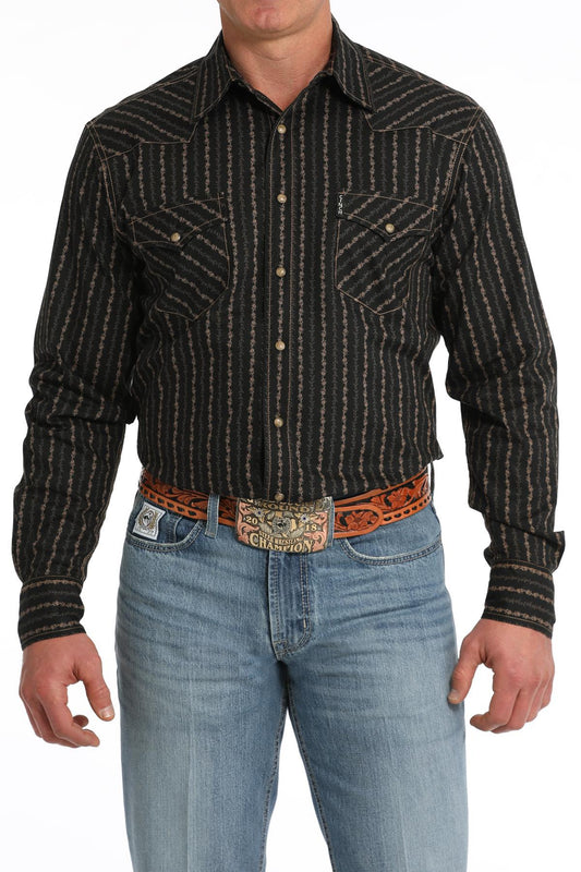 Cinch Men's Button Up Black Modern Print Long Sleeve Shirt