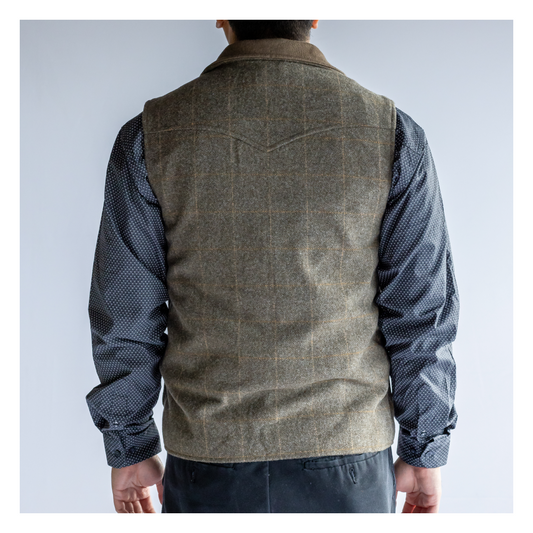Powder River Men's Plaid Wool Vest Taupe
