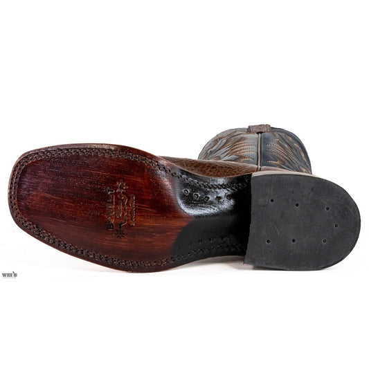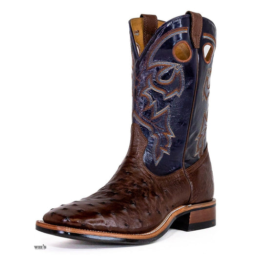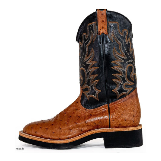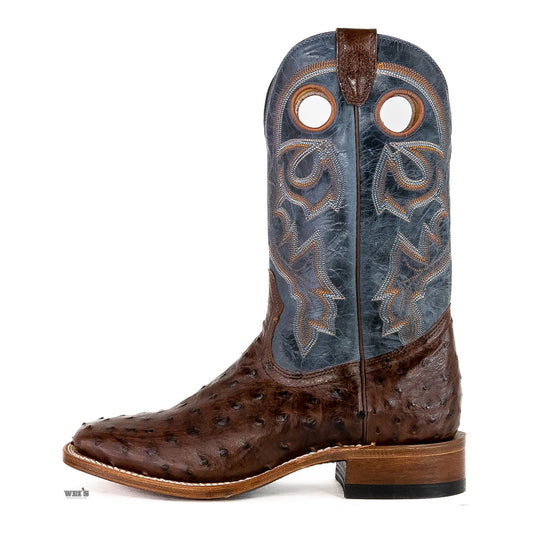 Boulet Men's Cowboy Boots Exotic Ostrich Wide Roper Heel Square Toe