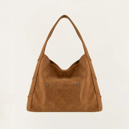 Montana West Wrangler Fringe Studded Hobo Bag- Brown