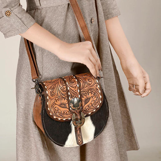 American Darling Women's Hand Tooled Cow Hide Leather Crossbody Bag
