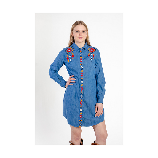 Panhandle Slim Women's Long Sleeve Chambray Embroidered Dress