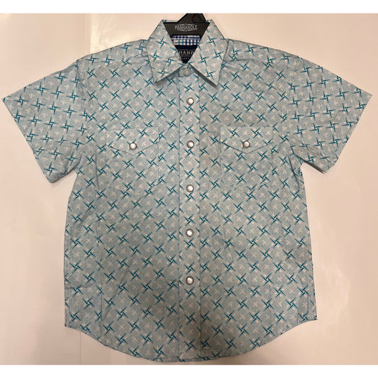 Panhandle Boy’s Shirt Turquoise Geo Print Western Snap Shirt - CLEARANCE