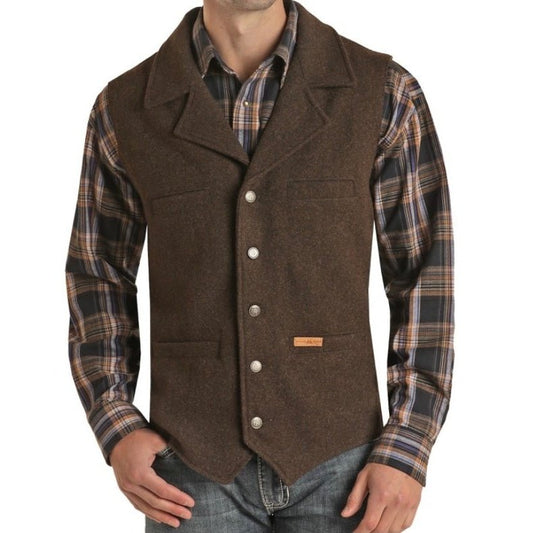 Powder River Men’s Vest Wool With Leather Collar By Panhandle Black