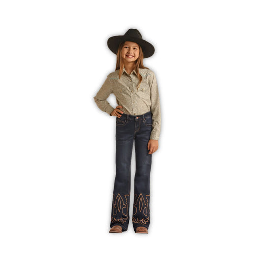 Rock & Roll Cowgirl Girl's Denim Medium Wash Trouser Jeans