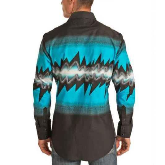 Rock & Roll Men's Shirt Long Sleeve Snaps Turquoise