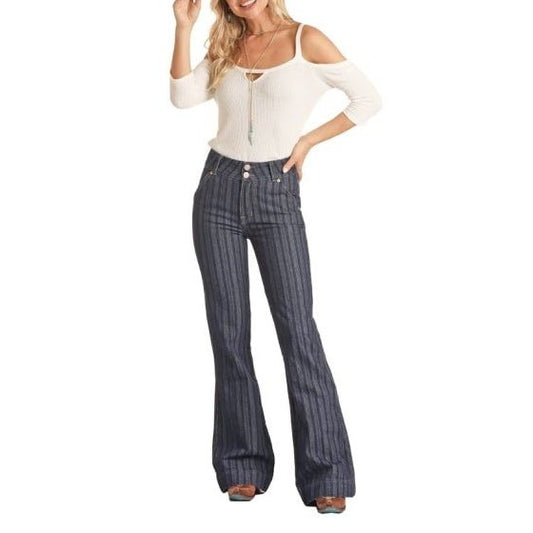 Rock & Roll Women's Jeans High Rise Stripe Jacquard Trouser