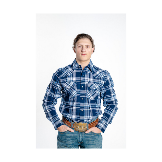 MWG Apparel Men's Flannel Blue Plaid Western Long Sleeve Snap Shirt