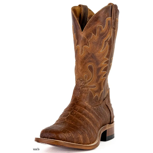 Boulet Men's Cowboy Boots Exotic Caiman Semi Roper Heel, Wide Square Toe