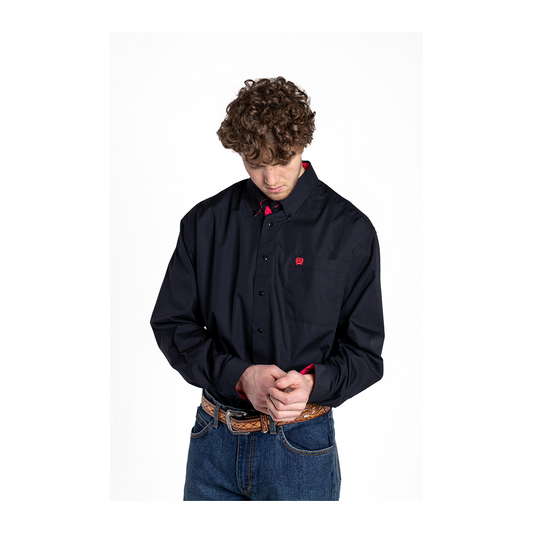 Cinch Men's Western Long Sleeve Button Down Shirt Solid Black With Pink Details