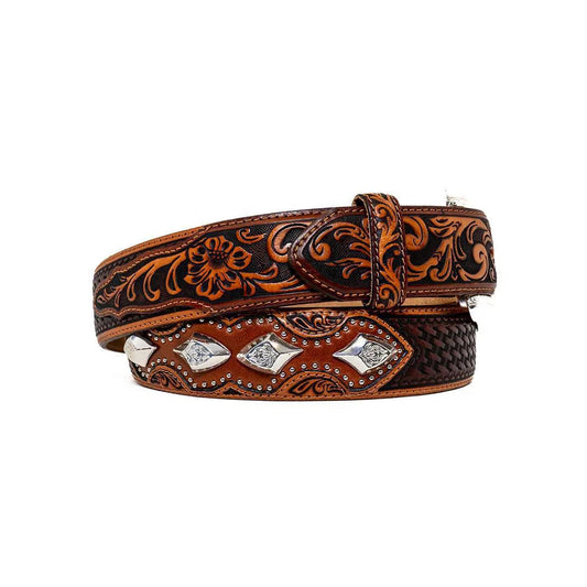 Tony Lama Men’s Belt Austin Floral Tooled with Silver Plated Buckle