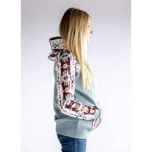 Hooey Women's Eldorado Hoodie Heather Grey w/ Black and Tan Aztec
