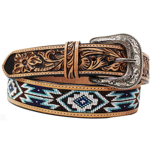 Challenger Unisex Belt Floral Tooled Beaded Western