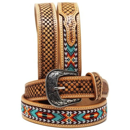 Challenger Kid's Youth Western Beaded Full-Grain Leather Belt