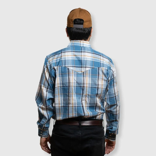 MWG Apparel Men's Snap Plaid Shirt - Sky Blue