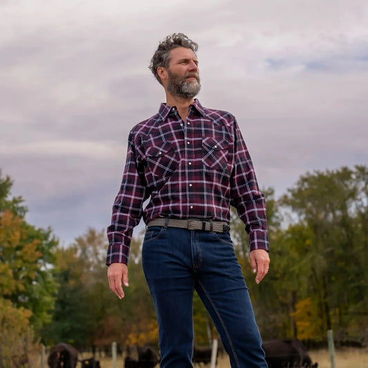 MWG Men's Flannel Plaid Western Shirt - Wine