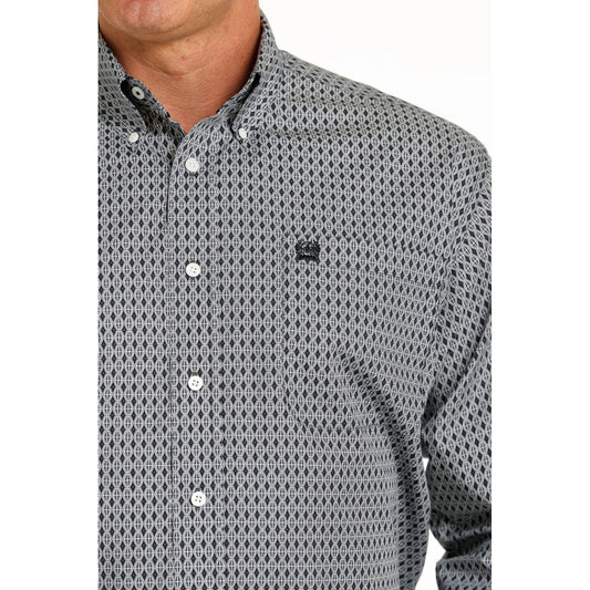 Cinch Men’s Shirt Casual Button-Down Geometric Grey Print