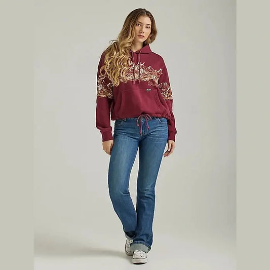 Wrangler Women’s Hoodie Retro Cowboy Panorama Graphic Cinched In Port Royal CLEARANCE