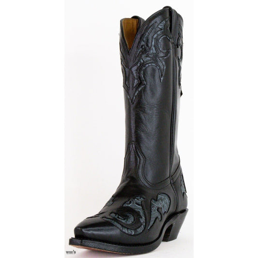 Boulet Women's Cowgirl Boots Cowhide Teal Inlay Snip Toe Cowboy Heel -Clearance