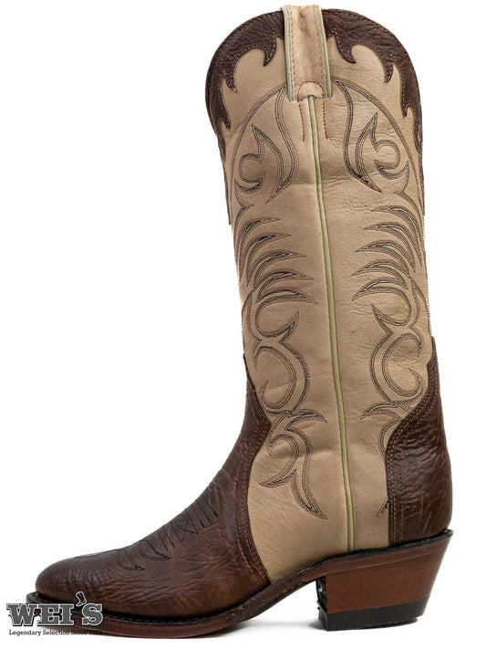 Boulet Women's Cowgirl Boots Oiled Cowhide Embossed Nubuck Roper Heel Wide Square Toe