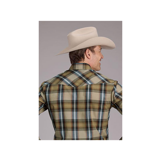 Roper Men's Tan Plaid Snap Long Sleeve Western Shirt