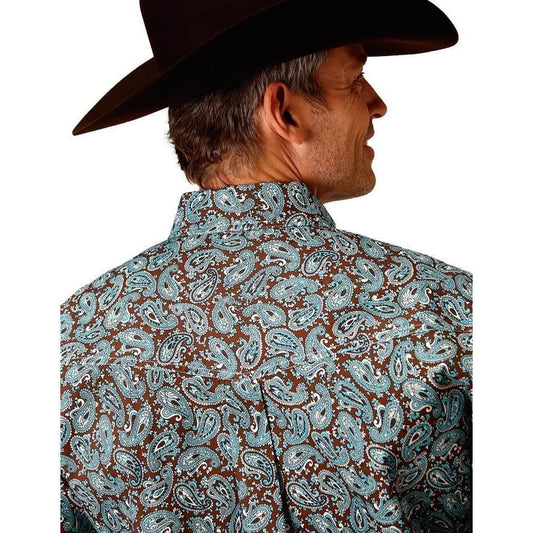 Roper Men's Western Shirt In Turquoise Mine Paisley