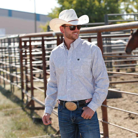 Cinch Men's Casual Shirt Long Sleeve Stretch Paisley Print
