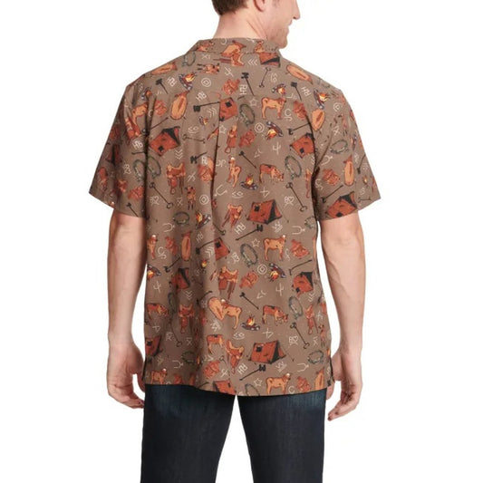 Cinch Men's Chocolate Camp Print Western Short Sleeve Shirt