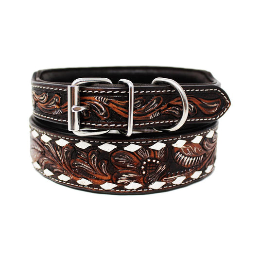 Challenger Dog's Amish Cow Leather Padded Heavy Duty Tooled Collar Brown