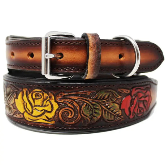 Challenger Dog's Cow leather Amish Padded Leather Hand Crafted Tooled Collar Cactus