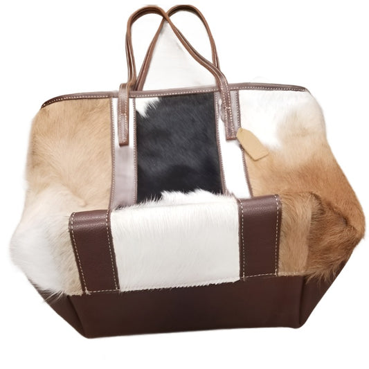 Handmade Purse in Cowhide and Leather with Metal Accents