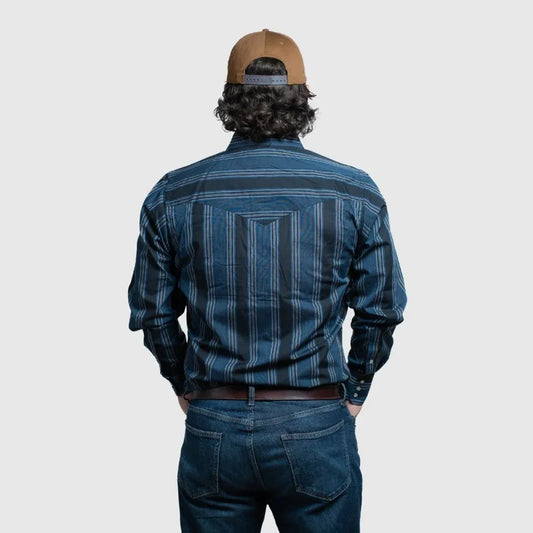 MWG Apparel Men's Flannel Blue Plaid Western Long Sleeve Snap Shirt