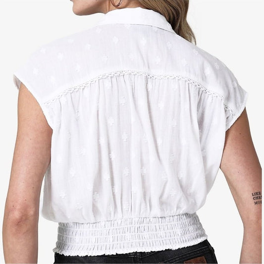 Wrangler Women’s Blouse Retro Smocked Collared Crop