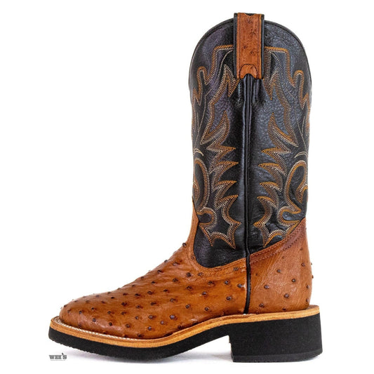 Boulet Women's Cowgirl Boots Exotic Ostrich U Toe Roper Heel Crepe Sole