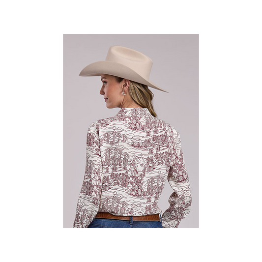 Roper Women's Long Sleeve Button Up Barrel Race Border Shirt