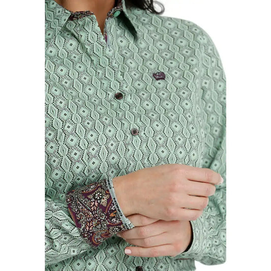 Cinch Women's Geometric Print Button-Down Western Shirt Navy