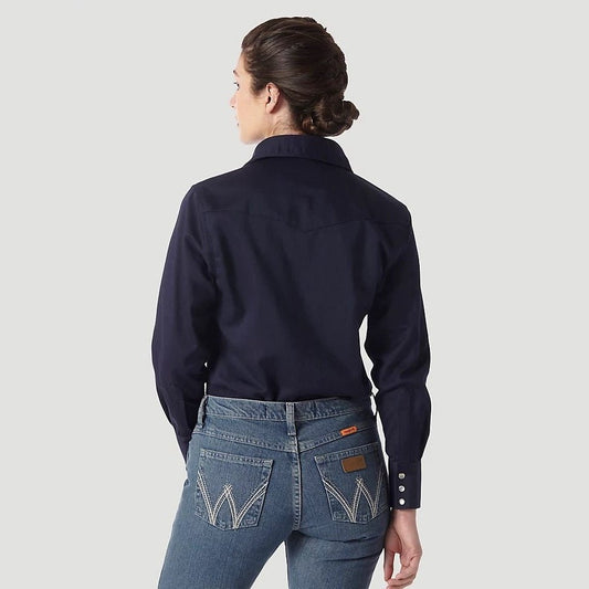 Wrangler Women’s Work Flame Resistant Long Sleeve Snap In Navy