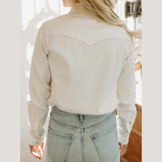 Kimes Ranch Women’s Shirt Denim Kaycee Winter White Snaps