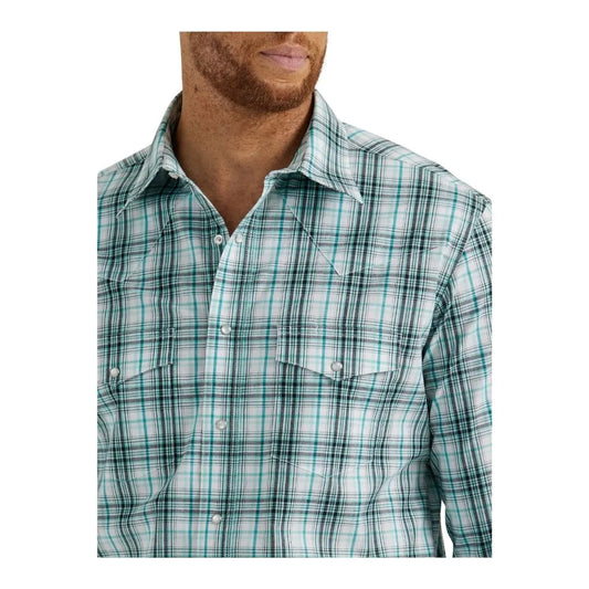 Wrangler Men's Wrinkle Resist Long Sleeve Shirt Classic Fit Turquoise