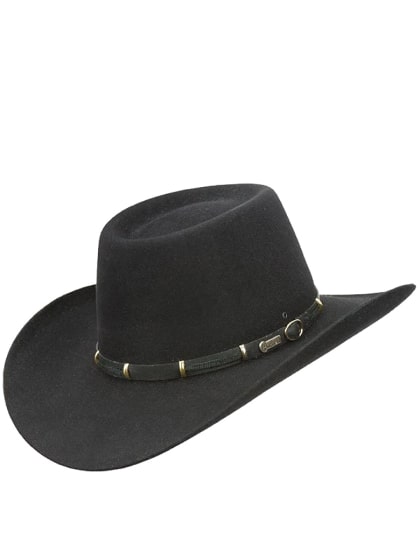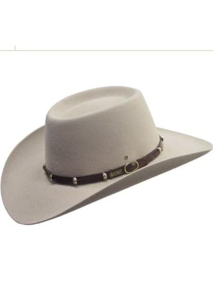 Akubra's The Boss style is a low crown Western Style fitted with an attractive trim. It features a brass-studded bonded leather band and satin lining.