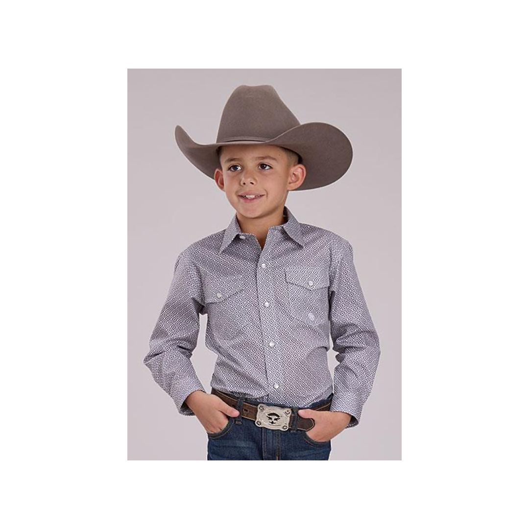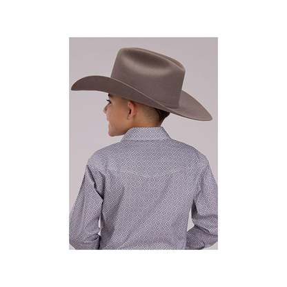 Classic western style with a modern stretch! The Amarillo Boy's Long Sleeve Stretch Poplin Western Snap Shirt is built for comfort and durability, featuring a printed design, snap closures, and a breathable cotton-spandex blend. Perfect for school, rodeos, or everyday wear!