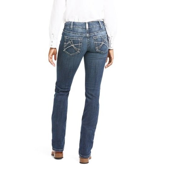 Rider tested and thoughtfully engineered, these Ariat women's R.E.A.L mid-rise, slim fitting jean features a stackable straight leg and performance stretch denim for added comfort that holds its shape and flatters yours. Larger sizes available!
